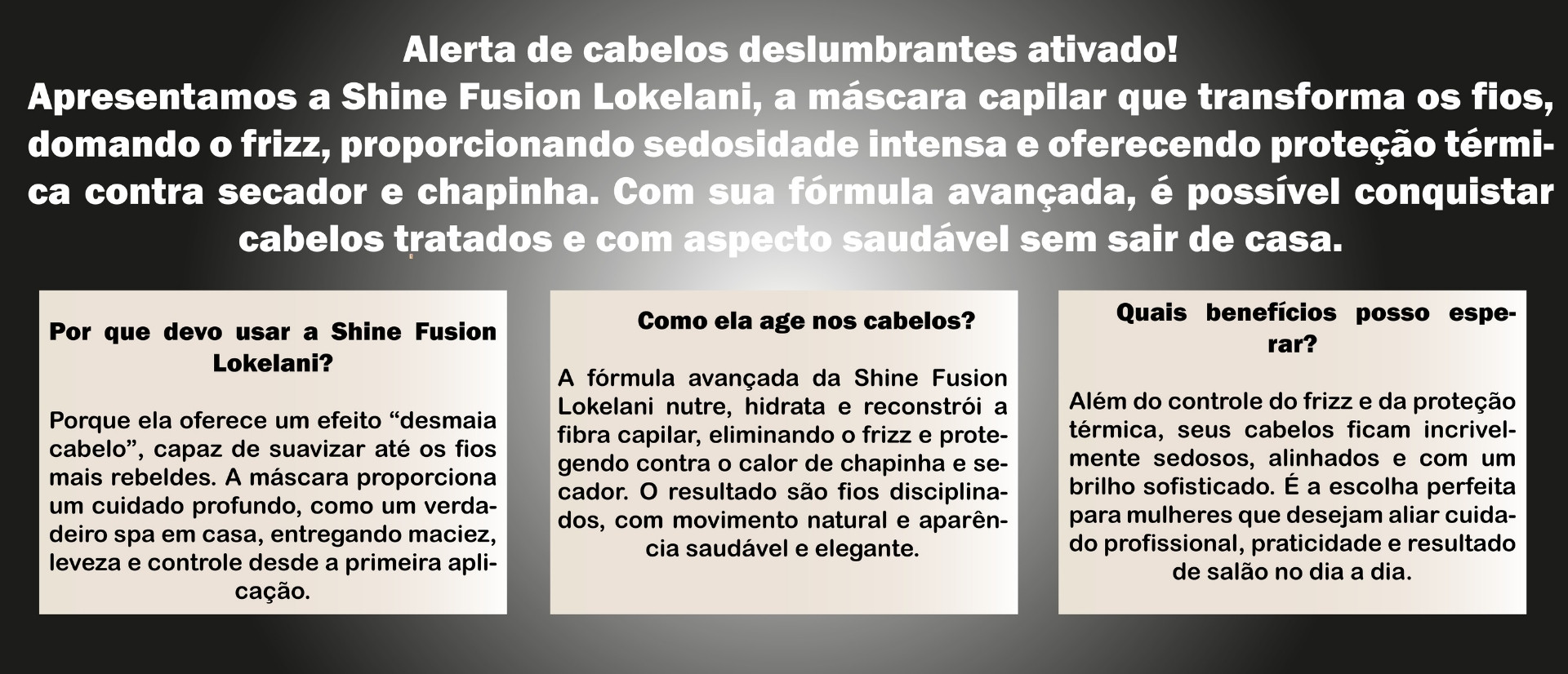 Descrição: Traz nessa versão sem enxágue, uma mascara capilar perfeita para aquele incriível efeito desmaia cabelo com desembaraço imediato, controle dos fios arrepiados e rebeldes e com a proteção térmica necessária para abrir o brilho espetacular e finalizar todos os tipos de tratamentos realizados